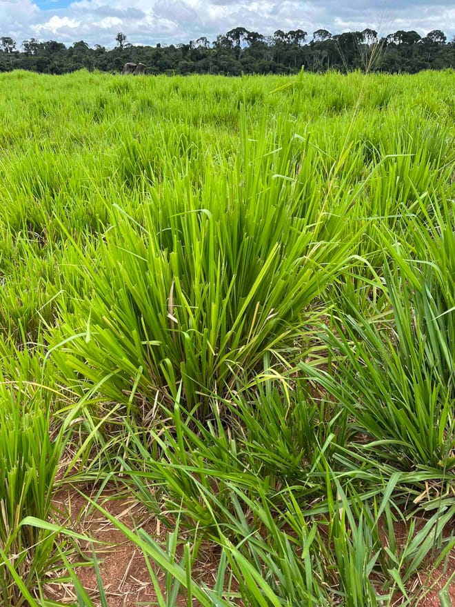 Mombaça grass in the foreground, preserved rainforest in the background (Michael Grunwald)