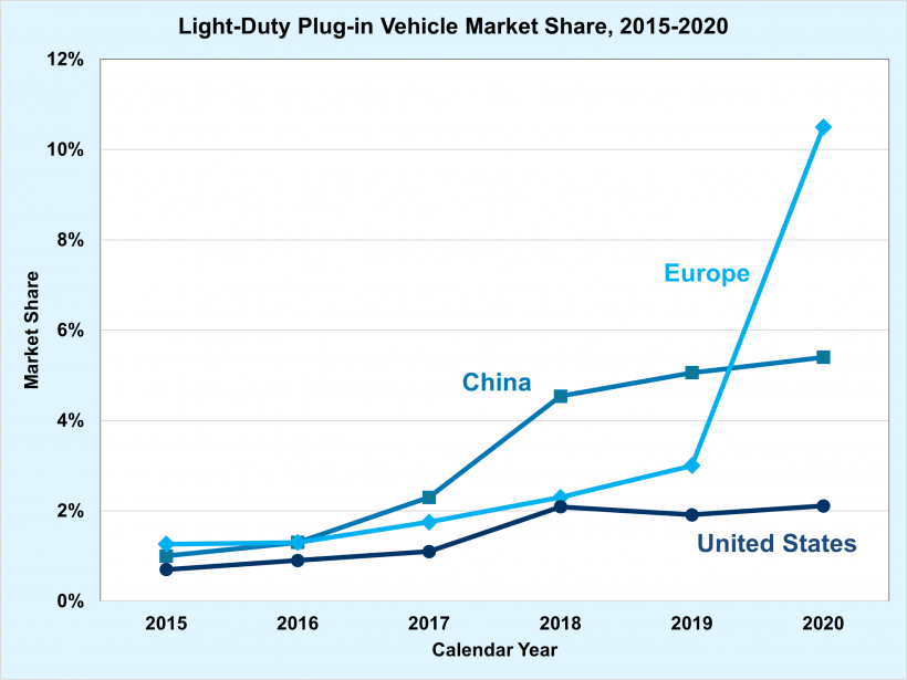 Market share is notably higher in Europe and China, and EV sales in the U.S. are poised for big growth in 2021 based on preliminary numbers.