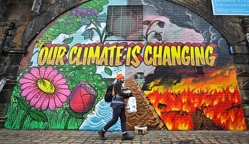 Mural near the site of the U.N. COP26 climate summit in Glasgow, Scotland (Jeff J. Mitchell/Getty Images)