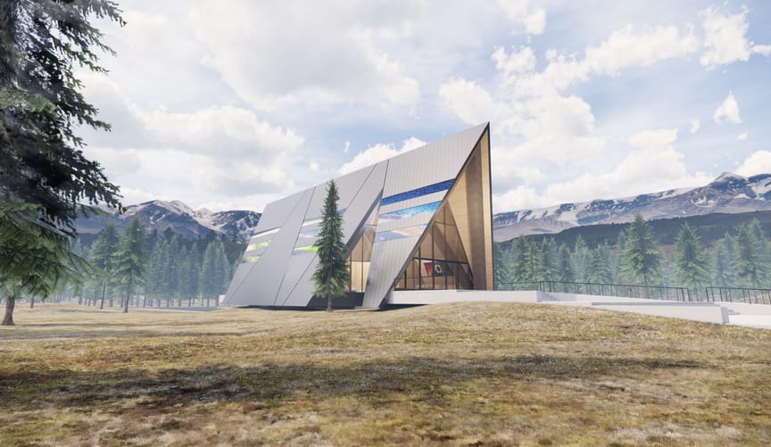A rendering of Oklo Power's Aurora powerhouse advanced fission plant concept (Gensler/CC BY-SA 4.0)