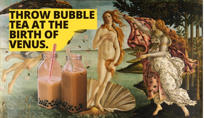 So many foodstuffs, so many priceless works of art. Which duo will be brought together in the next viral climate direct action? Use our generator to find out.By