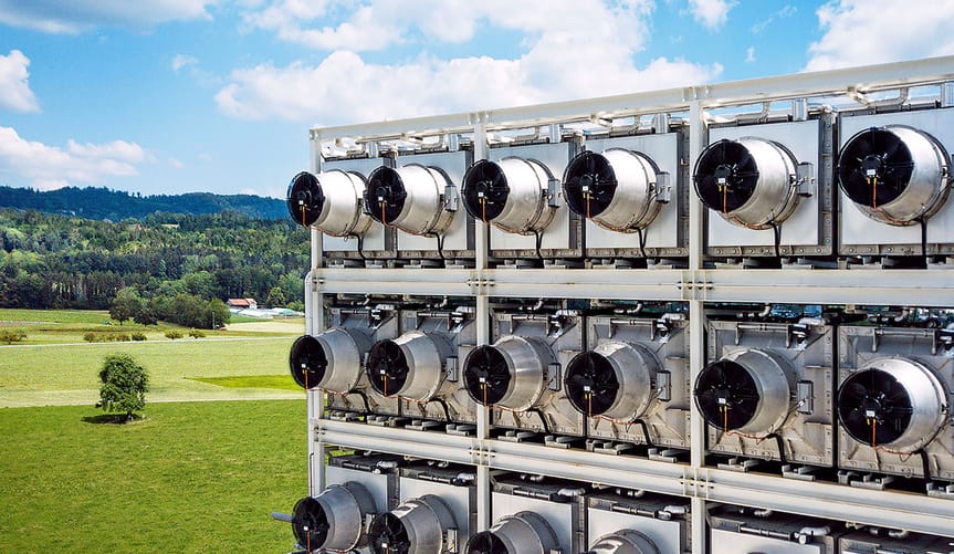 Climeworks' first "direct-air capture" plant in Switzerland can capture up to 900 metric tons of CO₂ from the atmosphere per year. (Climeworks)
