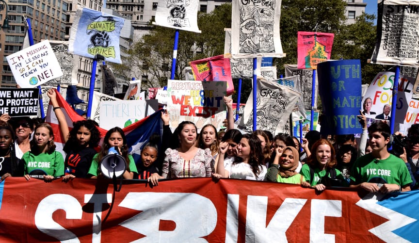 Ayisha Siddiqa and other activists march at the 2019 NYC youth climate strike. (Diane Greene Lent via Flickr)
